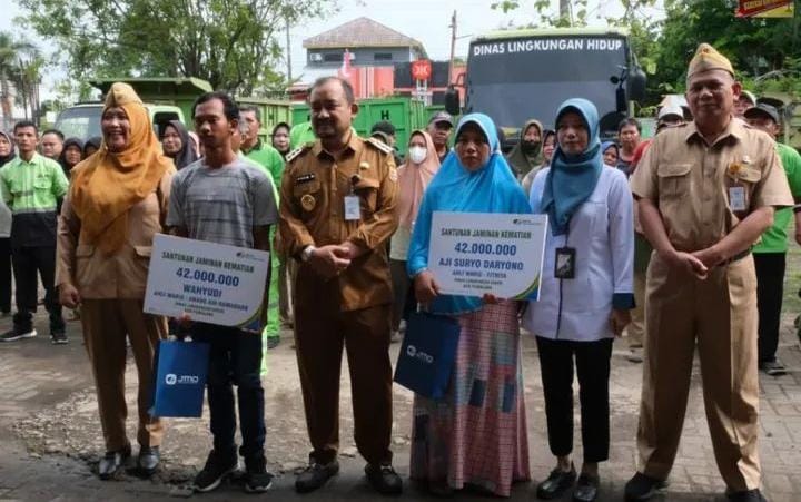 Bupati Pemalang, Anom Widiyantoro, secara langsung memberikan penghargaan dan motivasi kepada para petugas kebersihan, termasuk petugas sampah dan penyapu jalan.