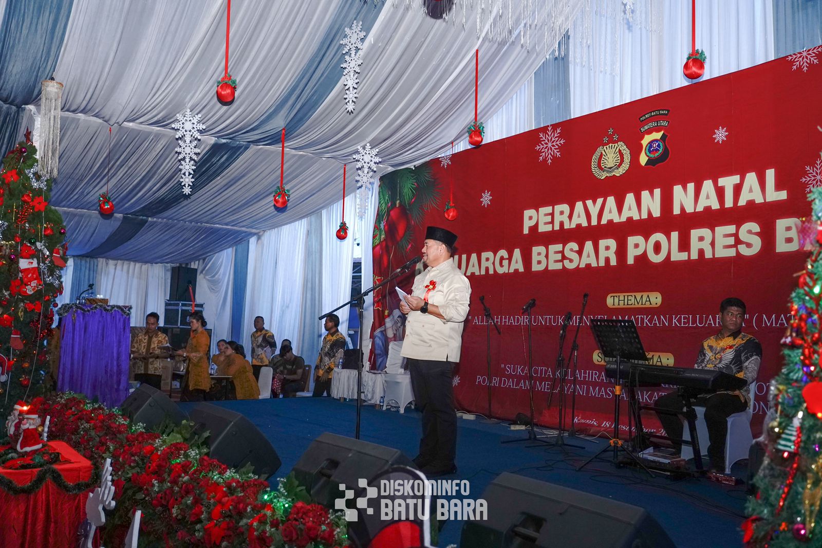 “Saya yakin dan percaya kepada Bapak Kapolres beserta Ibu sudah menjalankan toleransi keumatan, toleransi keagamaan yang cukup baik di Kabupaten Batu Bara, salah satu contoh bahwa panitia natal memberikan bantuan tidak hanya untuk gereja dan umat kristen saja, tetapi juga kepada umat muslim yang ada di Kabupaten Batu Bara,” ujar Bupati Batu Bara.