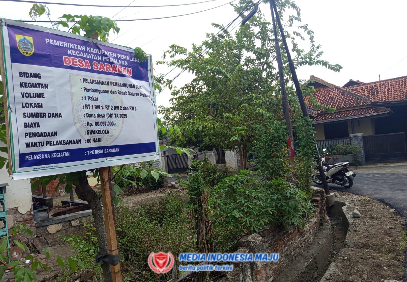 Pemalang, – Mediaindonesiamaju.com Pemerintah Kabupaten Pemalang melalui Kecamatan Pemalang akan segera menindaklanjuti temuan lapangan terkait pembangunan dan rehabilitasi saluran drainase di Desa Saradan. Proyek ini menggunakan Dana Desa (DD) Tahun Anggaran 2025 dengan total anggaran Rp 60.097.000.