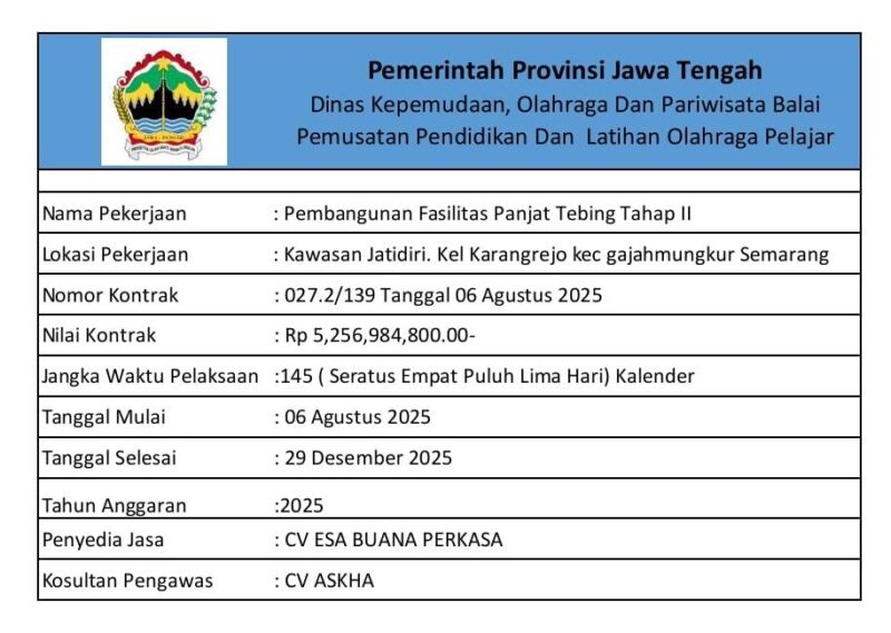 Semarang, 7 Oktober 2025 – Mediaindonesiamaju.com Kisruh proyek pembangunan fasilitas panjat tebing di Stadion Jatidiri Semarang memanas setelah muncul dugaan adanya praktik intimidasi dan pembajakan terhadap perusahaan rekanan, CV. EBP (Insan Buana Perkasa), yang disebut dilakukan oleh pihak pelaksana proyek, RMG. Kasus ini bahkan dikabarkan turut dibekingi oleh oknum pejabat dan anggota DPRD.