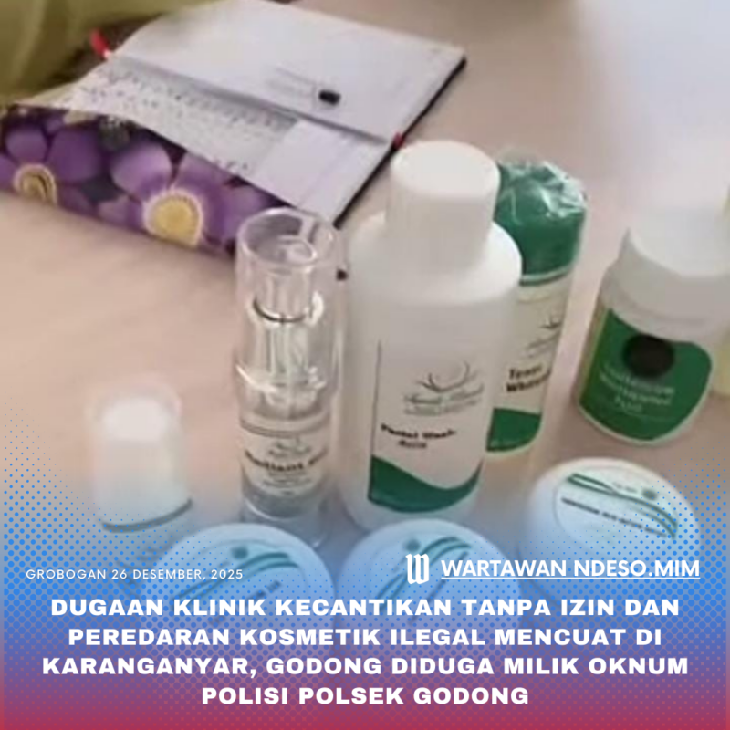 Dugaan Klinik Kecantikan Tanpa Izin dan Peredaran Kosmetik Ilegal Mencuat di Karanganyar, Godong Diduga Milik oknum Polisi Polsek godong
