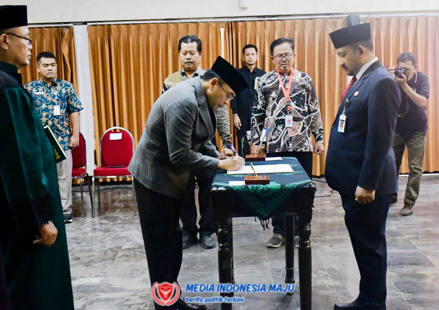 Pemalang, – Mediaindonesiamaju.com Bupati Pemalang Anom Widiyantoro melantik dan mengambil sumpah janji Penjabat (Pj) Sekretaris Daerah (Sekda) Kabupaten Pemalang Endro Johan Kusuma di Gedung Sasana Bakti Praja, Jumat (24/10/2025). Pelantikan Pj Sekda dilakukan untuk mengisi kekosongan jabatan Sekda Kabupaten Pemalang, dimana Sekda sebelumnya, Heriyanto ditunjuk sebagai Staf Ahli Bupati Pemalang Bidang Pembangunan, Ekonomi dan Keuangan.