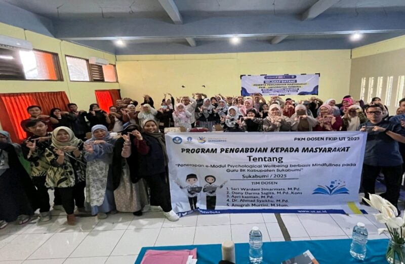 SUKABUMI – Dalam upaya meningkatkan kesejahteraan psikologis guru bimbingan dan konseling (BK), Fakultas Keguruan dan Ilmu Pendidikan (FKIP) Universitas Terbuka melaksanakan kegiatan Pengabdian kepada Masyarakat (PKM) bertajuk “Penerapan e-Modul Psychological Wellbeing Berbasis Mindfulness pada Guru BK Kabupaten Sukabumi.”