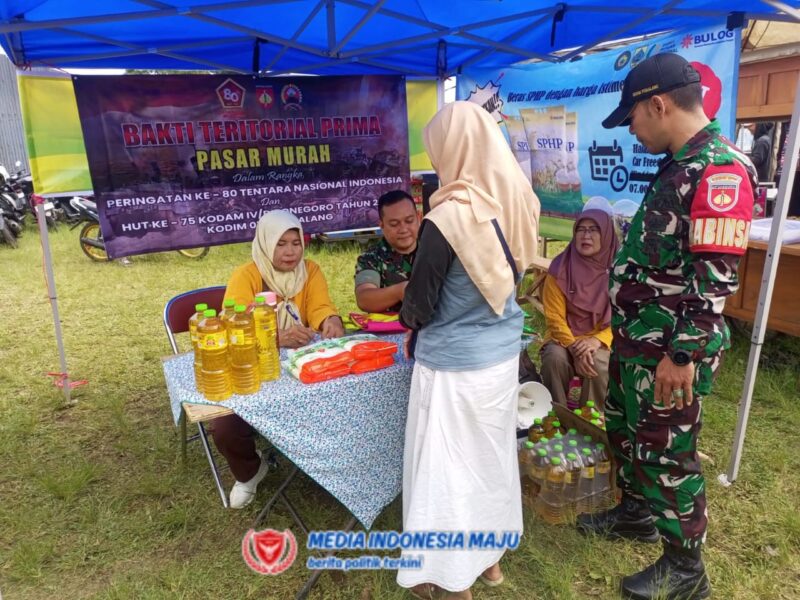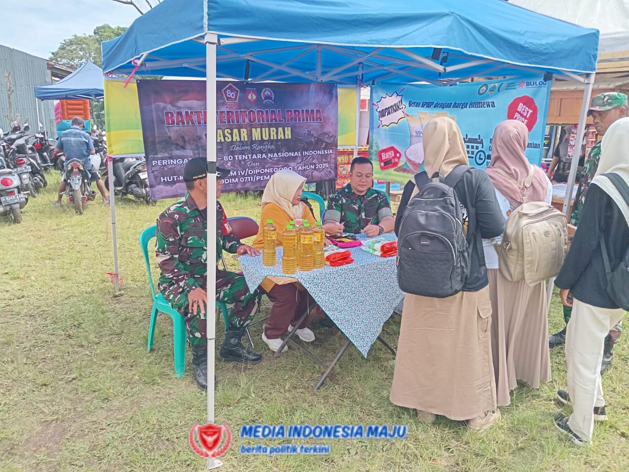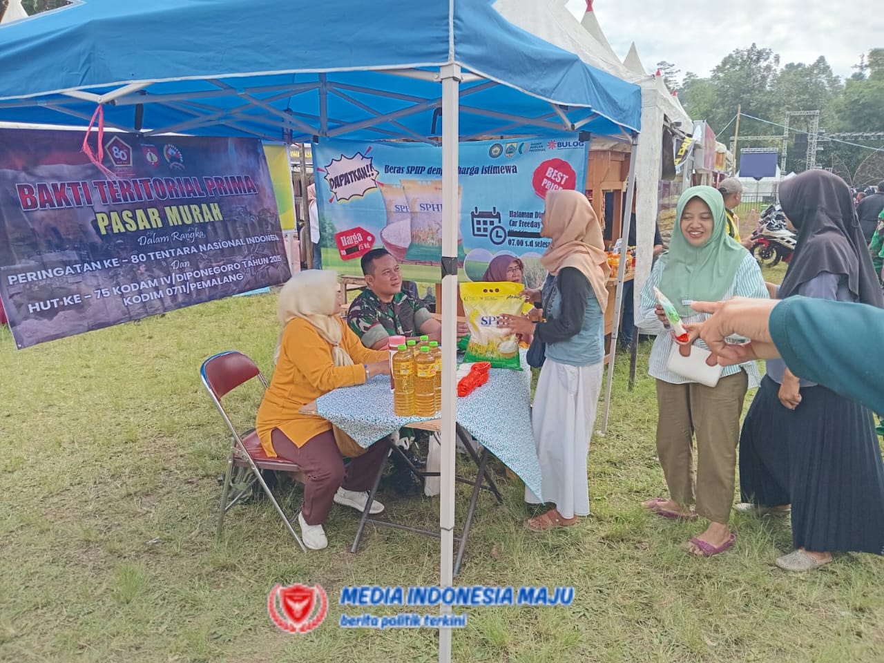Pemalang, – Mediaindonesiamaju.com Dalam rangka memperingati Hari Ulang Tahun (HUT) ke-80 Tentara Nasional Indonesia (TNI) dan HUT ke-75 Kodam IV/Diponegoro, Kodim 0711/Pemalang Korem 071/Wijayakusuma menyelenggarakan kegiatan Bakti Teritorial PRIMA Pasar Murah. Kegiatan ini digelar di Lapangan Sepak Bola Desa Pulosari, Kecamatan Pulosari, Kabupaten Pemalang, pada Jumat (19/9/2025).