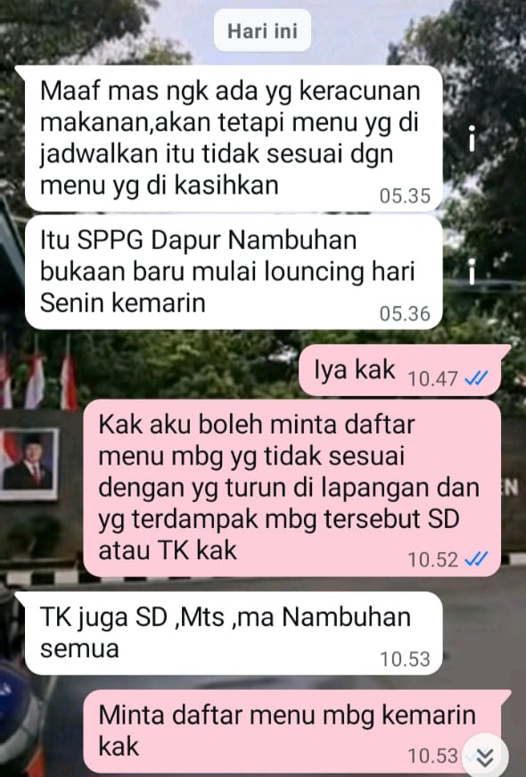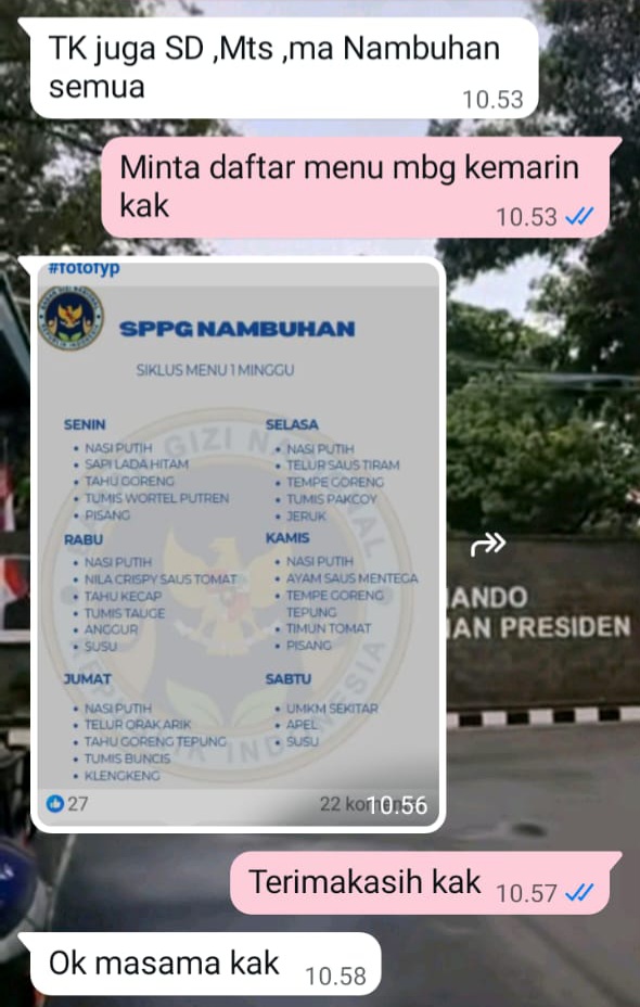 Selain dugaan penggunaan susu yang telah kedaluwarsa, masyarakat juga menyoroti ketidaksesuaian menu yang diberikan kepada beberapa sekolah penerima program MBG, mulai dari tingkat TK, SD, SMP, hingga MA.