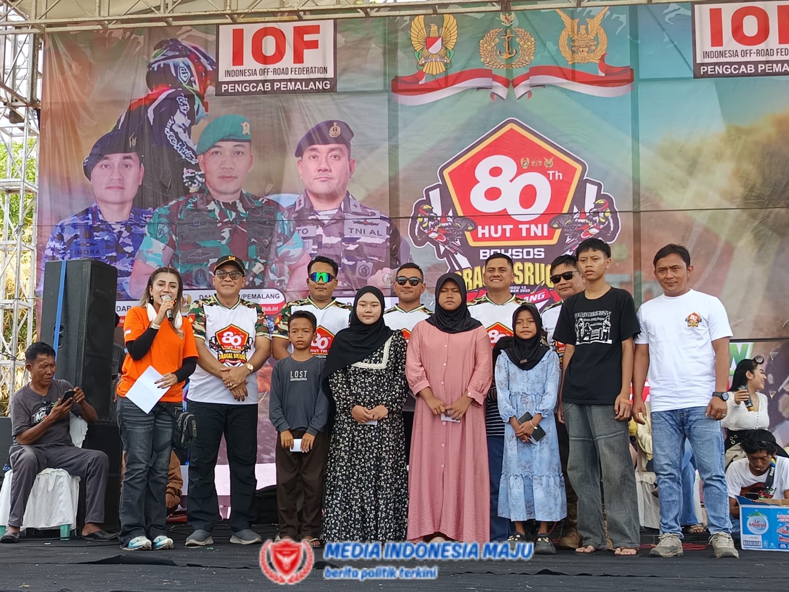 Pemalang,  — Mediaindonesiamaju.com Dalam rangka memperingati Hari Ulang Tahun (HUT) ke-80 Tentara Nasional Indonesia (TNI) tahun 2025 dengan tema “TNI Prima, TNI Rakyat, Indonesia Maju,” Kodim 0711/Pemalang bersama Komunitas Trabas Sragal Srugul Belik menggelar kegiatan Trabas dan Bakti Sosial (Baksos) di Lapangan Desa Simpur, Kecamatan Belik, Kabupaten Pemalang pada Minggu (12/10/2025).