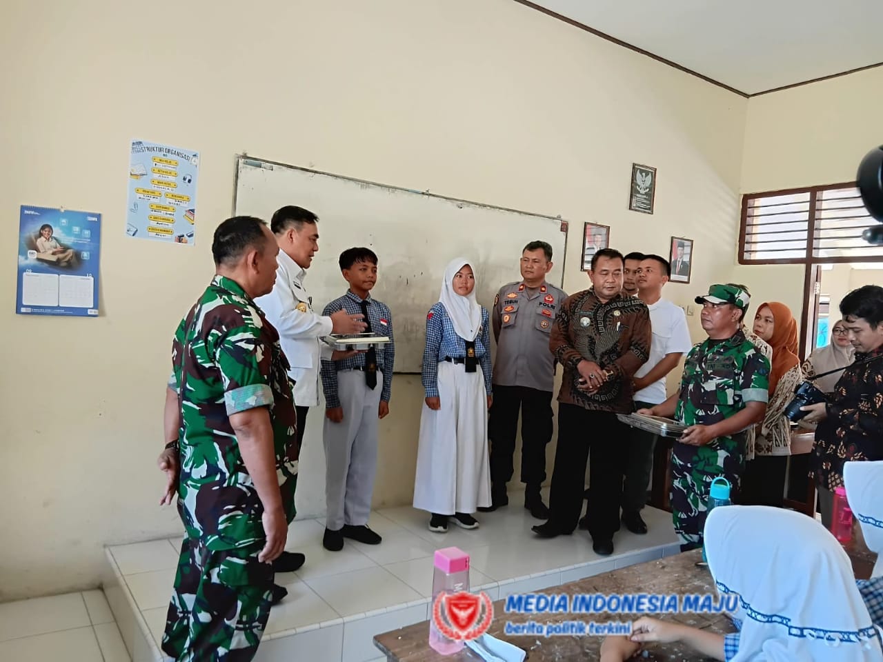 Pemalang – Mediaindonesiamaju.com Dalam rangka mendukung program pemerintah dalam peningkatan kualitas gizi peserta didik, Koramil 05/Ulujami Kodim 0711/Pemalang Korem 071/Wijayakusuma melaksanakan kegiatan monitoring pelaksanaan Launching Program Makan Bergizi Gratis (MBG) yang digagas oleh SPPG (Satuan Pelayanan Pemenuhan Gizi) Mitra Mandiri Yayasan Gizi Anak Bangsa Emas bertempat di SMP Negeri 1 Ulujami, Desa Ambowetan, Kecamatan Ulujami, Kabupaten Pemalang, Kamis (02/10/2025).