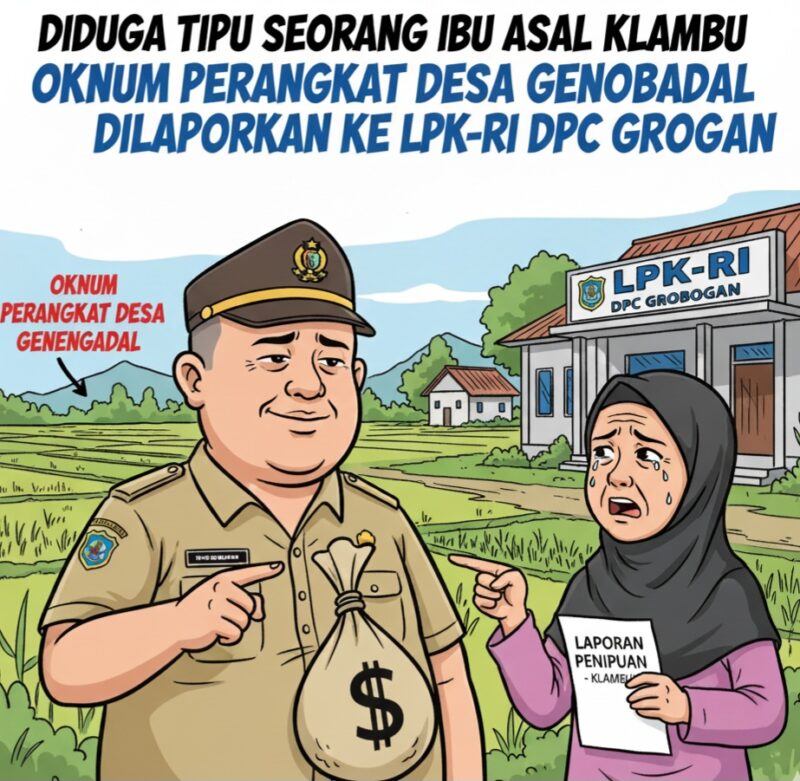 Grobogan, — Mediaindonesiamaju.com Nasib malang menimpa seorang ibu rumah tangga bernama Siti (44), warga Kecamatan Klambu, Kabupaten Grobogan. Ia mengaku dirugikan oleh salah satu perangkat Desa Genengadal, Kecamatan Toroh, yang diduga meminjam uang darinya sebesar Rp55 juta dengan alasan untuk melunasi pinjaman bank.