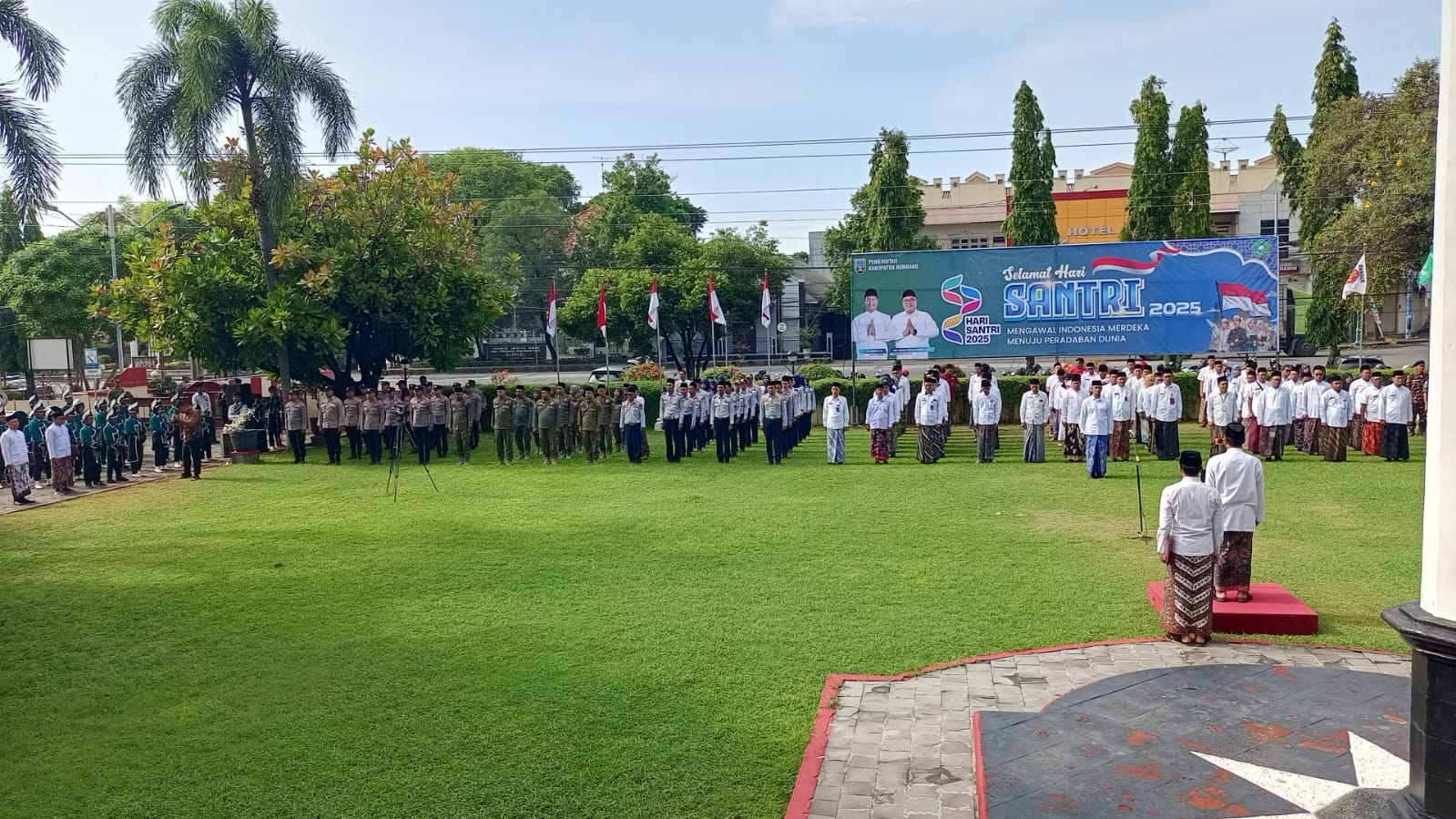 Dalam rangka memperingati hari bersejarah tersebut, pemerintah Kabupaten Rembang, Jawa Tengah melaksanakan upacara Hari Santri Nasional pada, Rabu (22/10/2025). Upacara berlangsung di halaman Kantor Bupati Rembang dan dipimpin langsung oleh Bupati Rembang, Harno, SE, Peringatan Hari Santri 2025 mengusung tema “Mengawal Indonesia Merdeka, Menuju Peradaban Dunia”