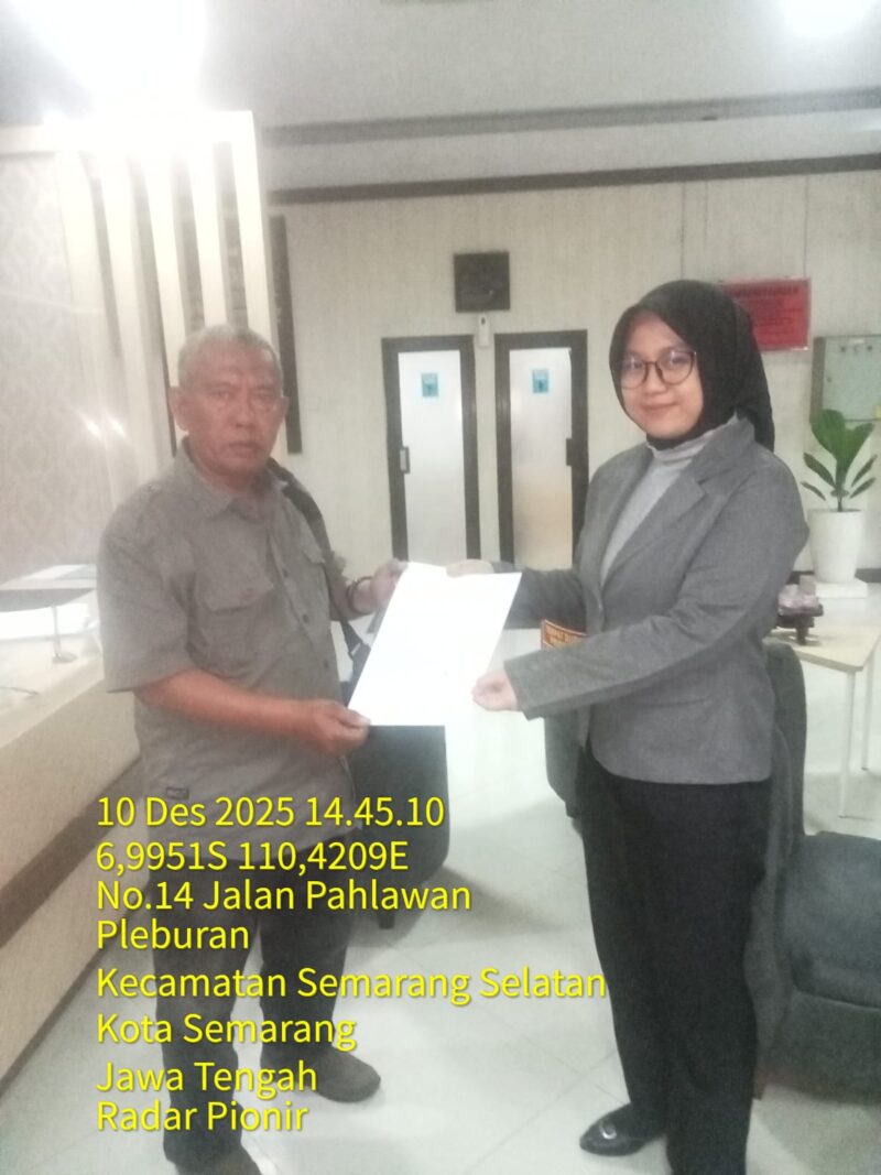Penyerahan laporan tersebut dibuktikan dengan tanda terima bernomor LP.001/PKL-XII/2025 dari PTSP Kejati Jateng di Jalan Pahlawan, Semarang.