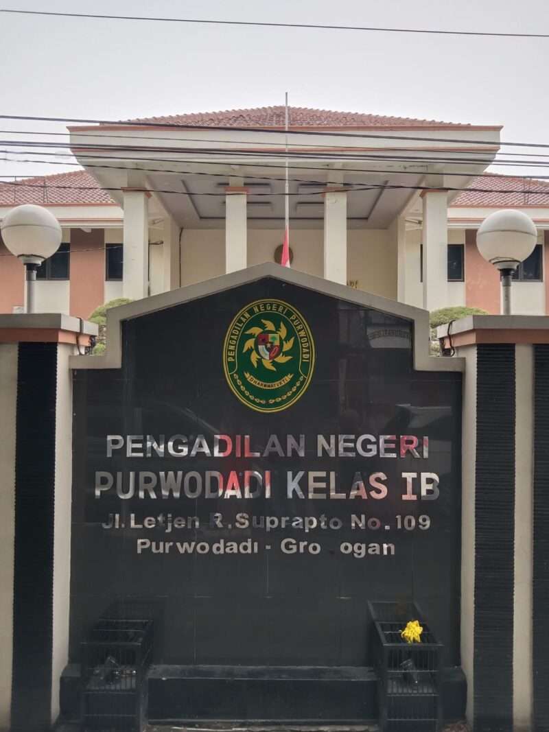 Purwodadi, — Mediaindonesiamaju.com Pengadilan Negeri (PN) Purwodadi menunda pembacaan putusan dalam kasus penipuan Tenaga Kerja Indonesia (TKI) dengan terdakwa Ahmad Supriyono dan Sri Sutikno. Sidang yang semula dijadwalkan berlangsung hari ini ditunda hingga Selasa depan.