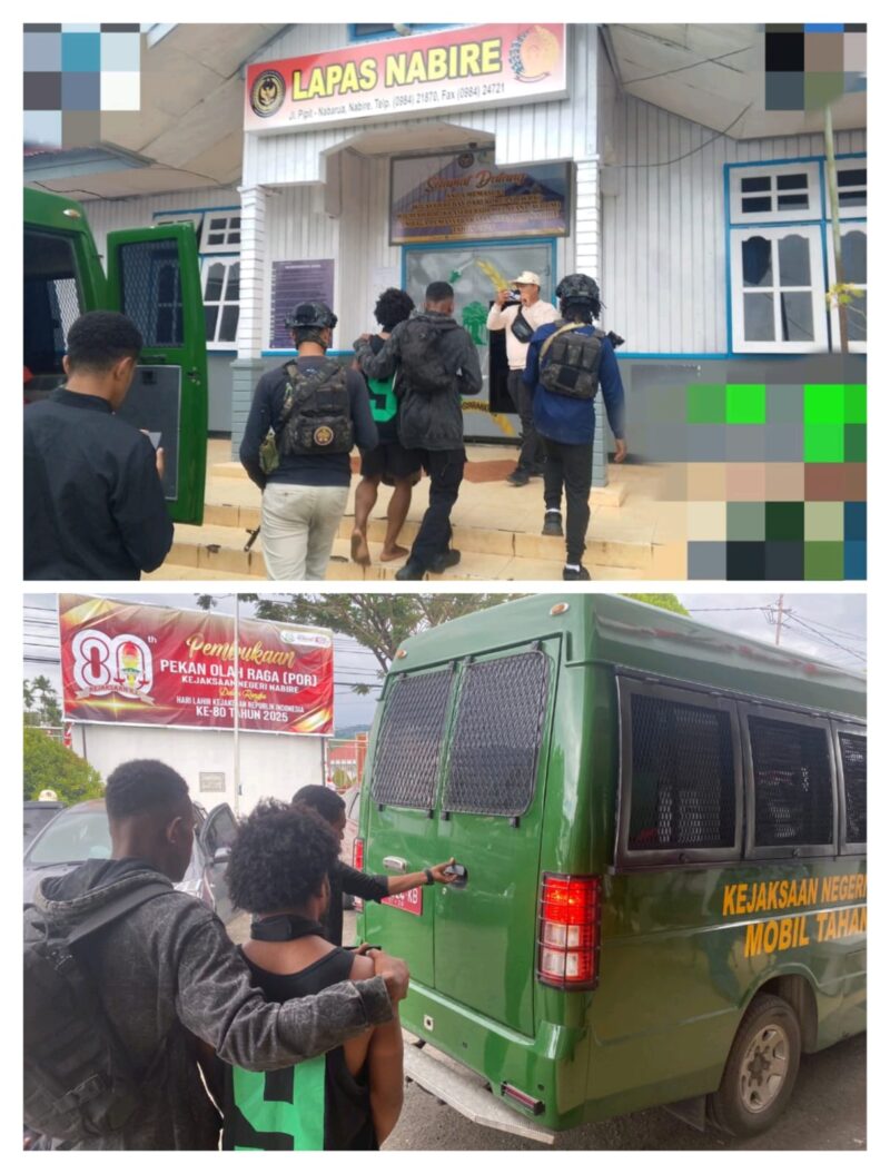 Nabire, — Mediaindonesiamaju.com Satgas Operasi Damai Cartenz bersama personel Polres Puncak Jaya melaksanakan pengawalan serta serah terima tersangka tindak pidana pembunuhan, Anis Telenggen alias Male (20), ke Kejaksaan Negeri Nabire, Jumat (12/9/2025).