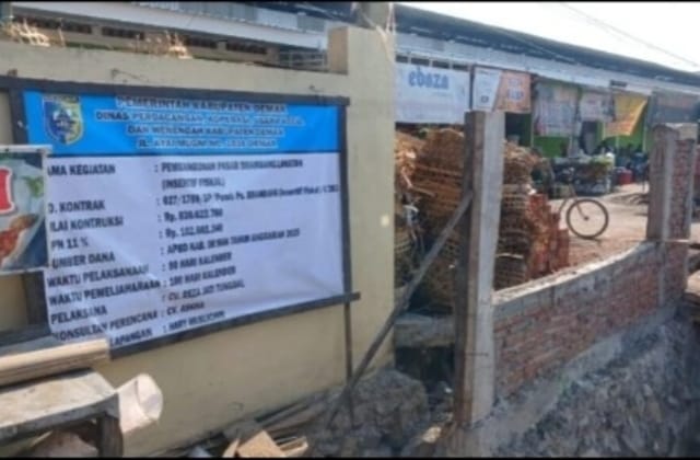 DEMAK – Mediaindonesiamaju.com Proyek senilai Rp830.622.760 yakni pembangunan Pasar Brambang lanjutan (Insentif Fiskal) milik Dinas Perdagangan, Koperasi, Usaha Kecil dan Menengah Kab. Demak anggaran 2025, tengah menjadi sorotan publik. Pasalnya proyek tersebut diduga di mark up, karena dinilai tidak sesuai dengan RAB (Rencana Anggaran Biaya).