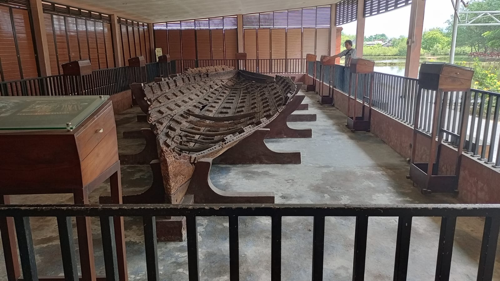 Pantauan MIM di Lokasi Situs Perahu Kuno Rembang, pada Minggu (26/10/2025), benda bersejarah itu berada di bangunan semi terbuka. Situs itu dilindungi oleh atap. Sedangkan bagian pinggirnya dikelilingi pagar. Nampak perahu sudah termakan usia.